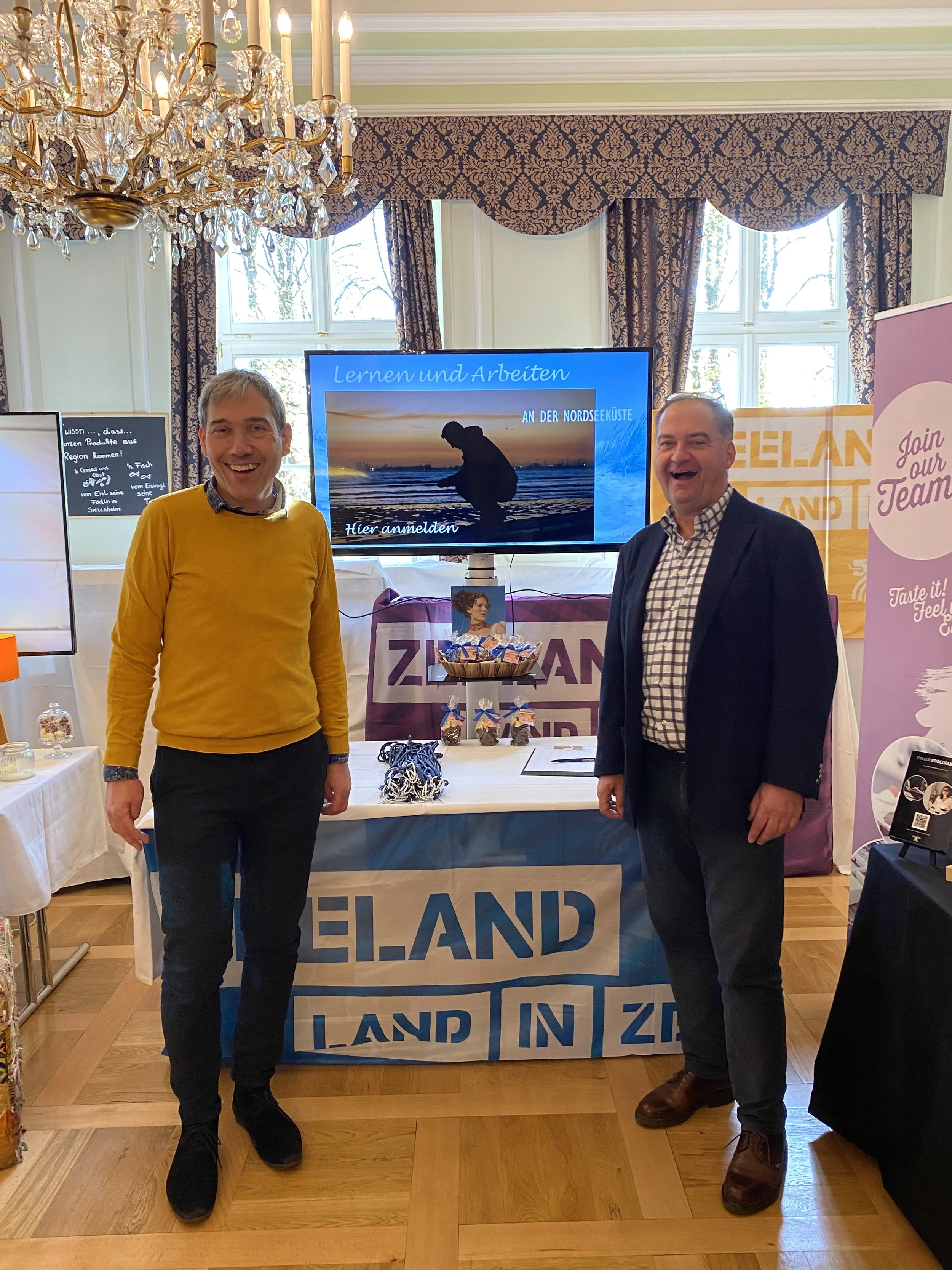 /Frank de Reu (voorzitter Zeeland KHN) en Martijn Anderson (bestuur TOP Cadzand) hebben op woensdag 9 november West Zeeuws Vlaanderen vertegenwoordigd op een carrièrebeurs voor horeca studenten in de Oostenrijkse stad Salzburg. In totaal zijn er meer dan 100 gesprekjes gevoerd waarvan het overgrote deel van de studenten geïnteresseerd was in stage lopen of werken in West Zeeuws Vlaanderen. Er was ook veel interesse in de Cadzandse bedrijven. Alle geïnteresseerde studenten hebben na afloop meer informatie ontvangen per e-mail. Bij KHN/ Frank de Reu kunnen de bedrijven die geïnteresseerd zijn in een stagiaire dat kenbaar maken. Voorwaarde is dat het bedrijf een leermeester in dienst heeft en zorgt voor woonruimte.
